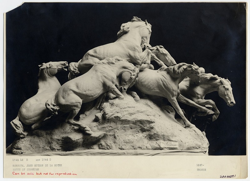 Borglum was interested in the fine line trod by people of the modern age between the sublime and the barbaric. One of his early sculptural works in bronze, “The Mares of Diomedes,” portrays the man-eating and uncontrollable horses belonging to the king of the Thracian Bistones, Diomedes.