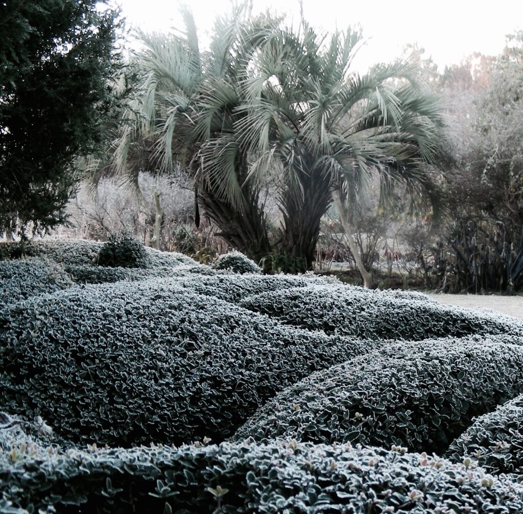 Lurking up ahead, surrounding the house, loomed dozens of multi-armed creatures. They were grazing, dancing, peaking out, and worshiping the sun. Little spider topiaries and elephantine creatures lazed on an endless, perfectly flat, green lawn—a zoo of sorts in its own right. It seemed like what I’d expected—a little tacky, a lot of sheared bushes, no flowers, not really a garden.